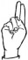 На ћирилици написано ВАЛЕНТИНА КЉУКОВНИЦА састоји се из 19 слова [?]. Исписано ћириличном једноручном азбуком за глувонеме:
